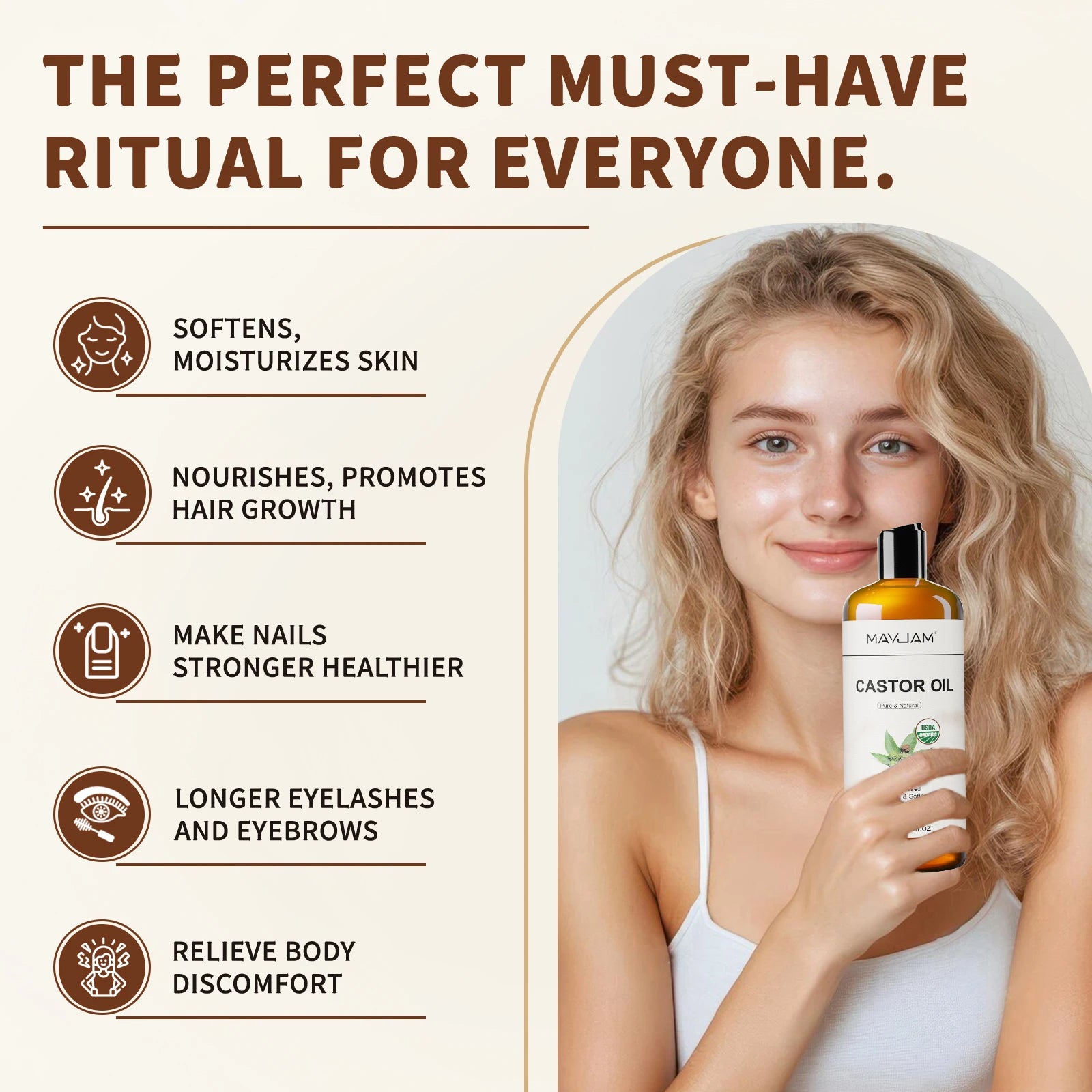 USAD Organic Castor Oil Cold Pressed Pure Natural Carrier Oil for Massage Boby Moisturizing Face, Hair, Skin & Eyelash Growth